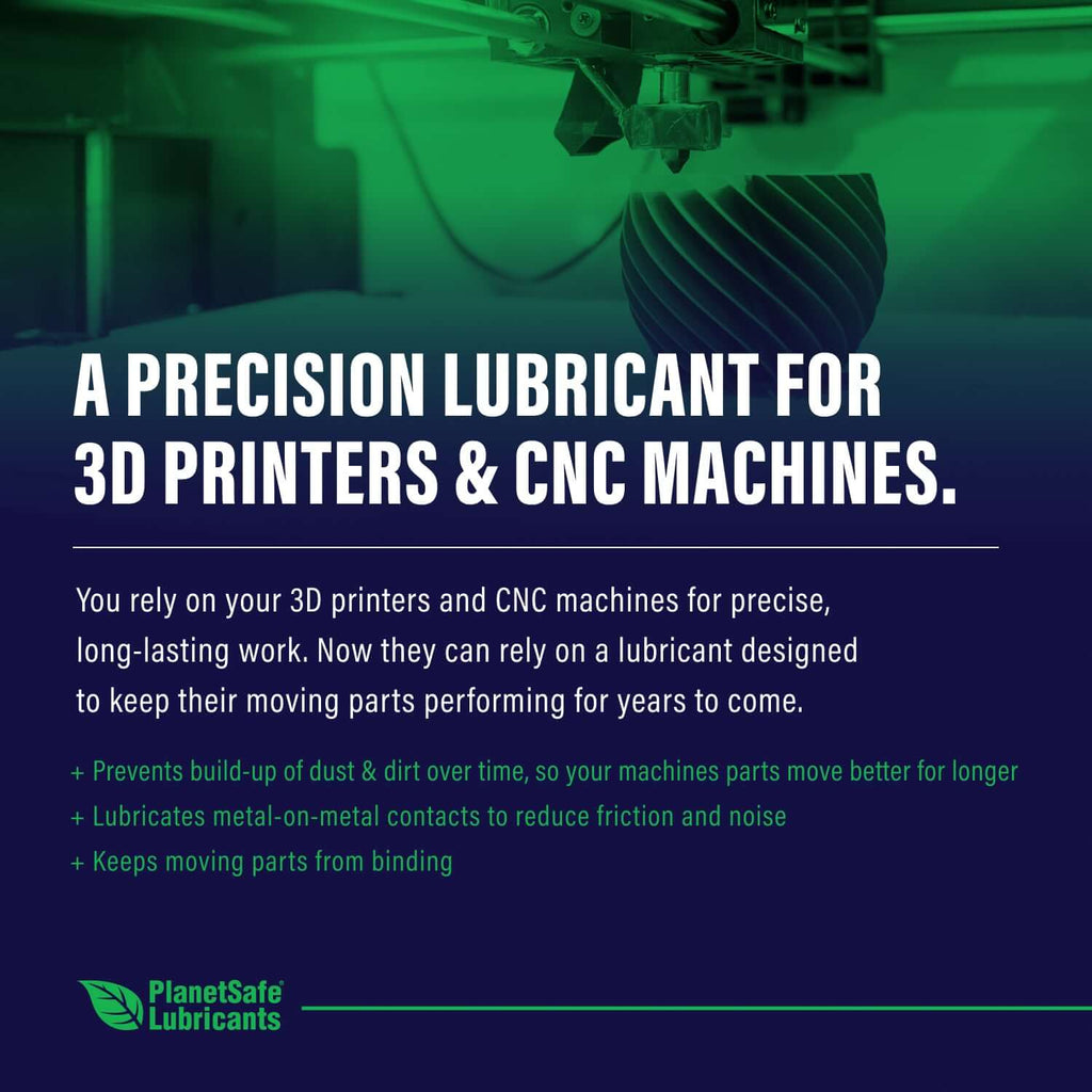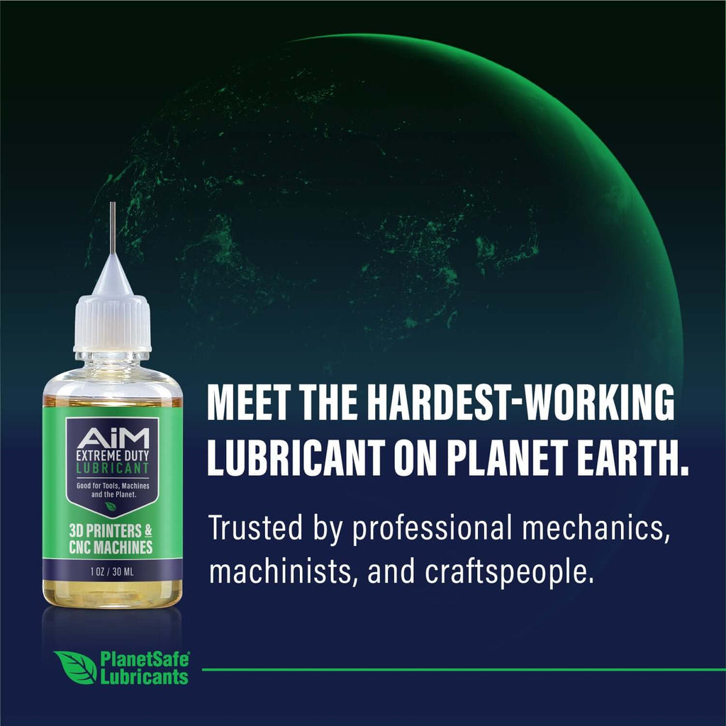 PlanetSafe AiM 3D Printers & CNC Machines Lubricant is formulated specifically for Z-screws, rods, bearings, and other moving metal-to-metal contact points. It lubricates while bonding to metal surfaces, helping prevent dust buildup and reducing friction over long-term use.