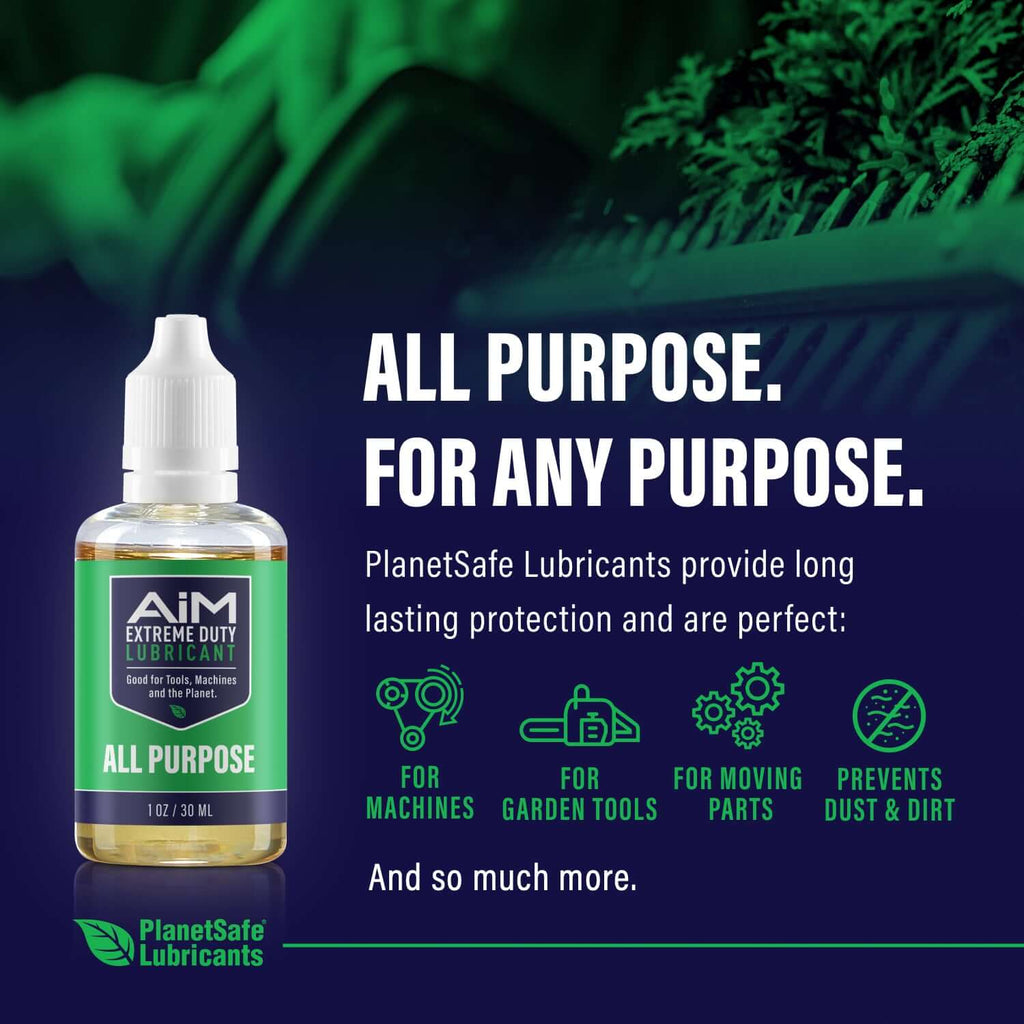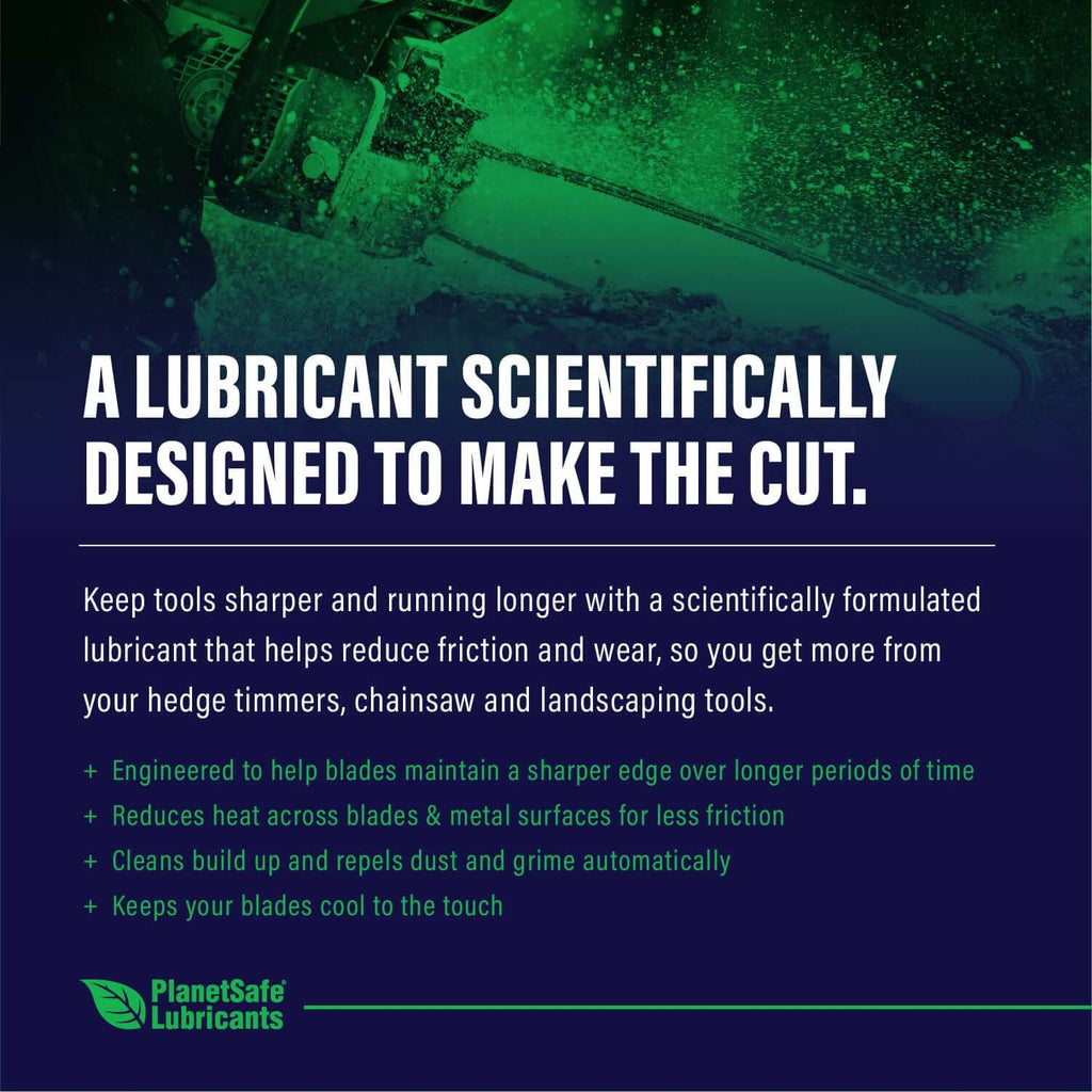 Designed to help your tools perform better and last longer. Meet the new, sharpest tool in your shed––or shop. PlanetSafe AiM Extreme Duty Hedge Trimmer & Chain Saw Lubricant Oil Kit is scientifically formulated to reduce friction and wear, this lubricant makes sure you get more life out of your landscape and yard tools. Finally there is a lubricant tough enough to match the toughness of your chainsaw.